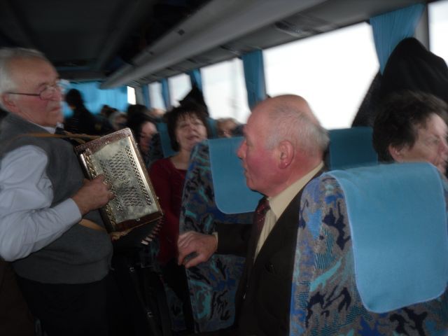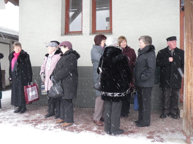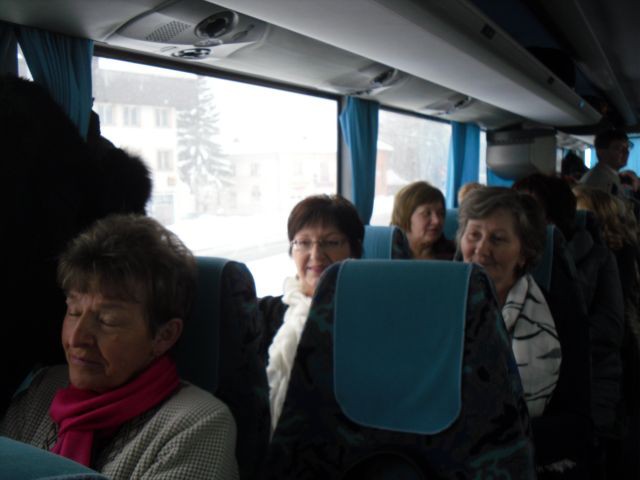 Obrovské záveje snehu nás už v autobuse naladili dobiela. Po modlitbe radostného ruženca pod vedením pána farára, sme sa s chuťou pustili do napečených koláčov, po ktorých nasledoval spev. Veď by to aj bola hanba, keď polovica z nás spieva v speváckom zbore.