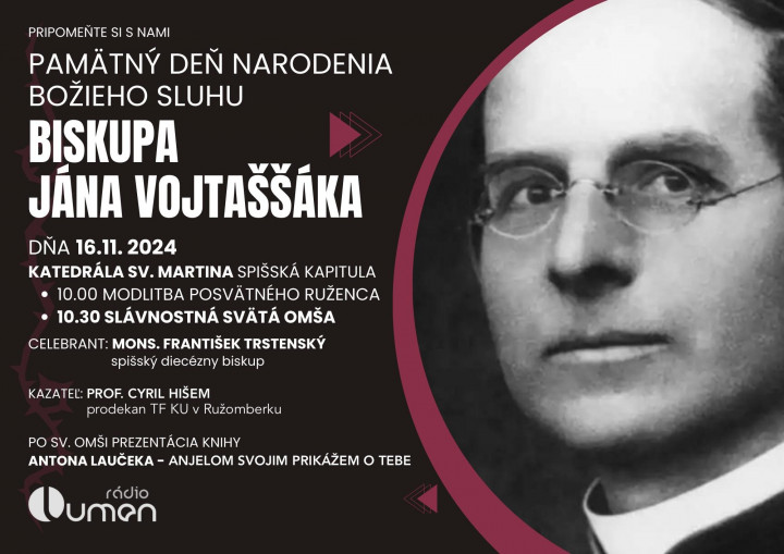 16.novembra od 10:00 hod. si v Katedrále sv.Martina v Spišskej Kapitule pripomíname pamätný deň narodenia Božeiho sluhu biskupa Jána Vojtaššáka.
