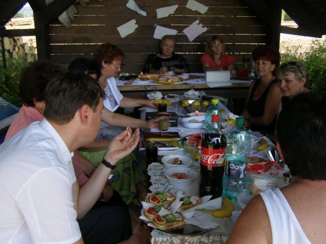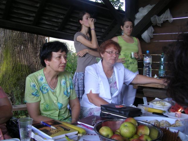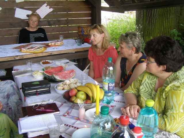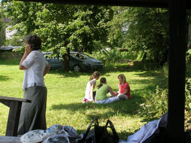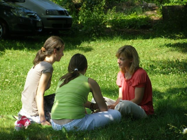 Po obede sme sa presunuli na farskú záhradu, kde nám "domáce" mamy pripravili posedenie. Stretnutie viedli mama Anka a Mária – diecézne koordinátorky za Spišskú diecézu. Spoločne sme v modlitbe poprosili Ducha svätého, aby viedol naše stretnutie a prečítali sme si úryvok zo Svätého písma. Nasledovalo spoločné zdieľanie o dianí v jednotlivých skupinkách MM.