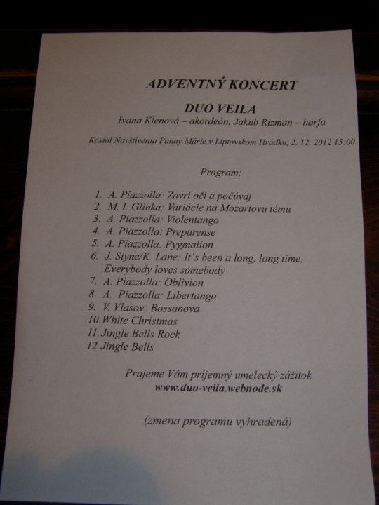 Aj tento advent nás potešili zvuky harfy a akordeónu