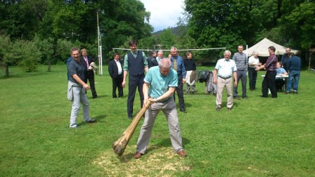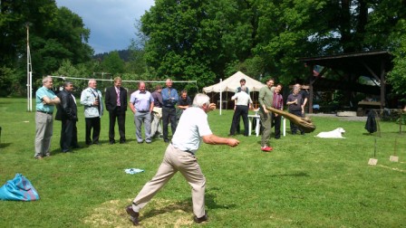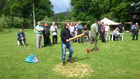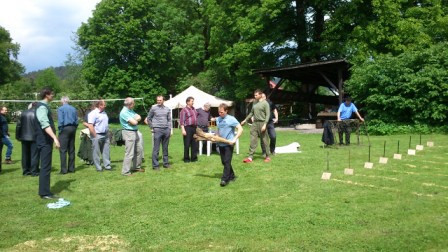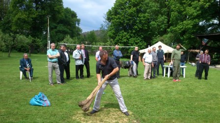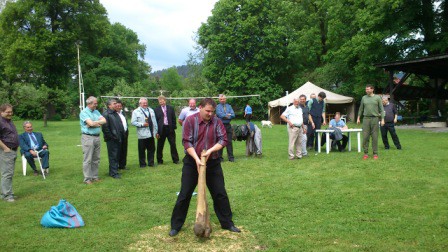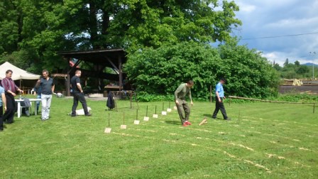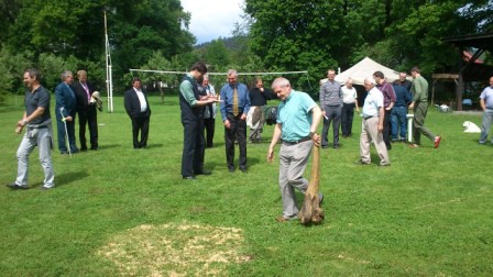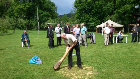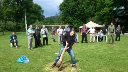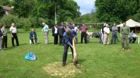 Pokračovanie stretnutia na farskej záhrade okrem zdieľania a vzájomného povzbudzovania svojimi svedectvami doplnilo dobré jedlo, prestreté stoly s výsledkami cukrárskych schopností našich manželiek a prekvapením stretnutia - Majstrovstvami spoločenstva mužov Spišskej diecézy v hode budzogáňom. Rozhodcom a zapisovateľom bol Stano, fotodokumentáciu zabezpečil Marián a to hlavné, víťazstvo po suverénnom výkone 13,7 m zostalo doma vďaka Petrovi Michalíkovi, ostatné miesta na "stupňoch víťazov" putujú do Spišských Hanušoviec za výkony Mira Galicu a Jozefa Sičára.