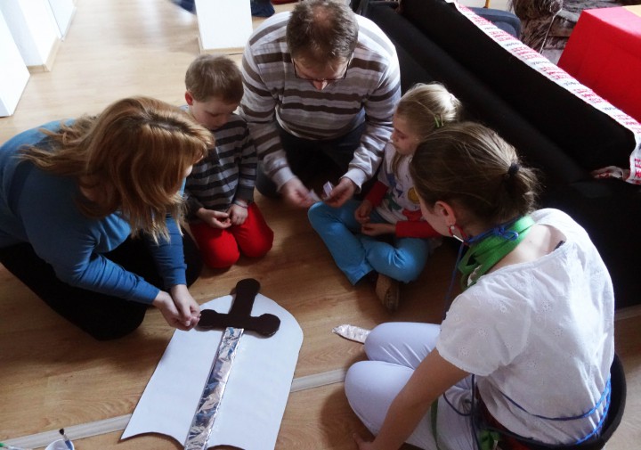 Tento rok sme rozbehli na eRko stretnutiach nový projekt, ktorý prepája naše stretnutia s nedeľnými omšami. Chceme viac priblížiť deťom liturgiu na sv. omšiach a pútavými kázňami od p.f. Matavu im priblížiť Svaté Písmo. Na každom stretnutí rozoberáme nedeľnajšie evanjelium a spolu vytvoríme nejakú pomôcku alebo predmet, ktorý bude slúžiť na lepšie vysvetlenie nedeľňajšej kázne.