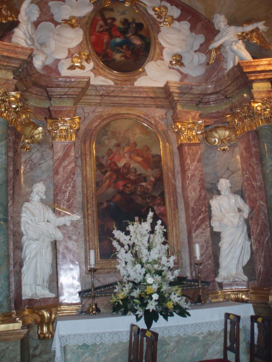 Dolný kostol – postavený (1622 - 1642) v ranobarokovom štýle. Vzácnou umeleckou pamiatkou je hlavný oltár Snímanie kríža (1662) od rakúskeho autora Johanna Perneggera