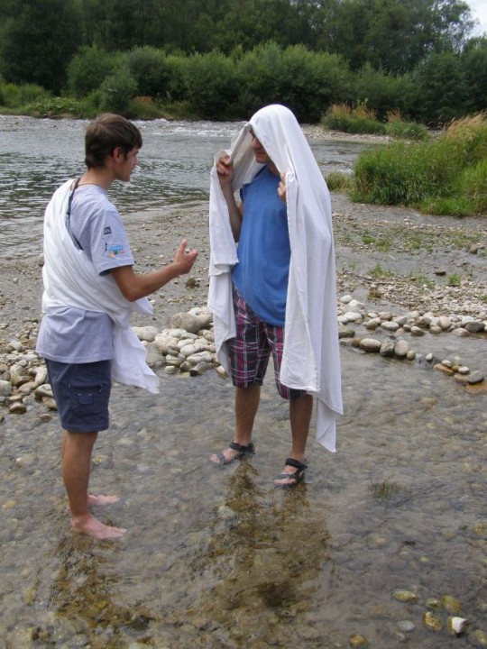 Druhý deň pokračoval témou „Krst Pána Ježiša v Jordáne“. Hneď ráno sme sa ocitli na púšti, kde nás privítal Ján Krstiteľ a povedal nám pár slov o svojom živote, ako žil, aké oblečenie nosil a koho svojim životom prišiel ohlasovať. Čítaním o Jánovi Krstiteľovi zo svätého písma, sme sa zároveň učili orientovať sa v svätom písme. Nasledovali scénky zo života Jána Krstiteľa a stanoviská kde si deti vyskúšali aj viazanie uzlov a šnurovanie topánok. Poobede na sútoku riek Váh a Belá sme si pripomenuli Krst Pána Ježiša a obnovenie krstných sľubov. V záverečnej modlitbe každý priložil svoju kvapku na ceste k Ježišovi.