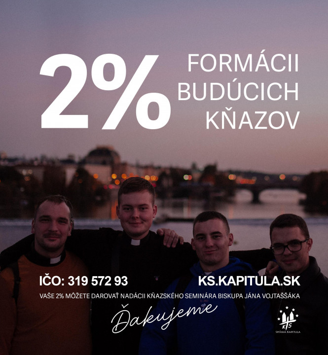 14.02.2026: Kňazský seminár biskupa Jána Vojtaššáka je tiež prijímateľom 2 percent daní a prosí o našu podporu aj touto formou.