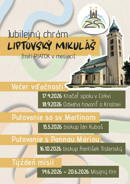 16.10.2026: Najbližšia akcia je Večer vďačnosti 17.4.2026 Kráčať spolu v Cirkvi