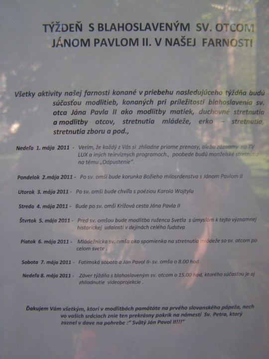 1. - 8. 5.2011 Prvý májový týždeň sme začali s blahoslaveným Jánom Pavlom II.