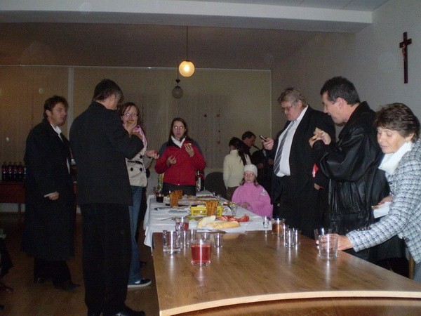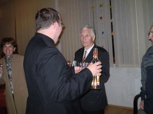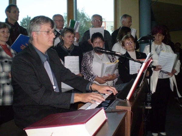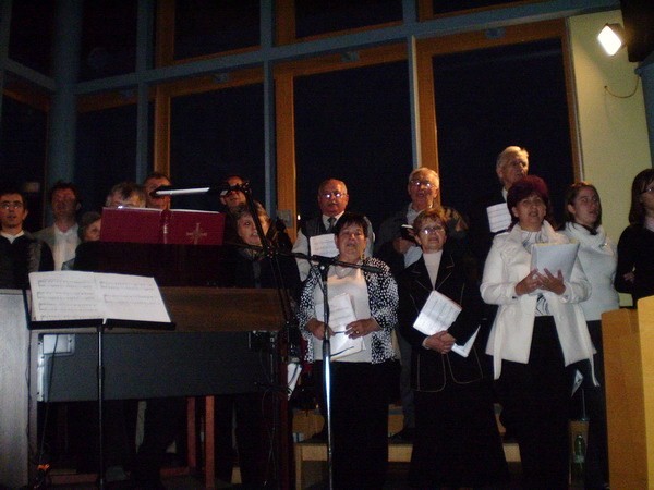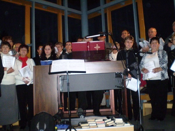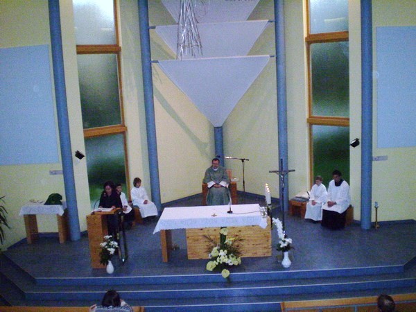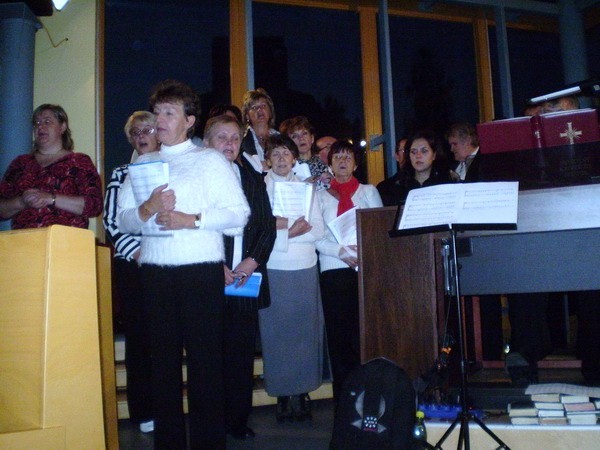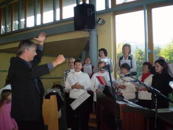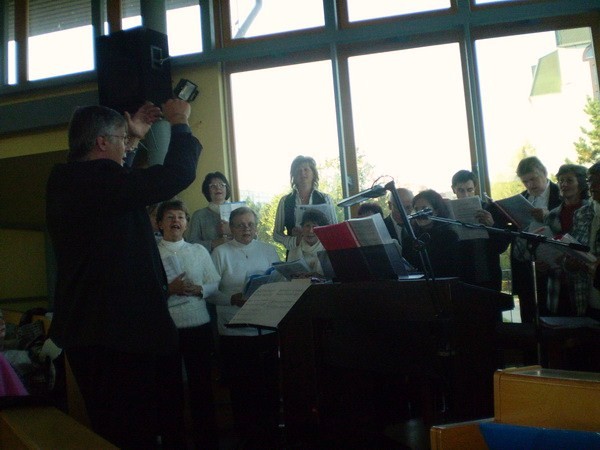Pozvali nás spievať do Banskej Bystrice na večernú nedeľnú svätú omšu. Vybavili sme autobus, dohodli sa na repertoári a mohli sme štartovať. Cestou sme sa zastavili na Starých Horách a poklonili sme sa v Bazilike Návštevy Panny Márie. V Bystrici na sídlisku Fončorda nás privítali mladí Junekovci, (ktorí to všetko spískali) a modrý kostolík. Zaujímavá stavba nás prekvapila príjemným prostredím a akustikou. Kostol je zasvätený sv. Archanjelovi Michalovi. Po svätej omši sme išli do pastoračného centra (ktoré im v dobrom závidíme), kde nám pán farár poďakoval (páčil sa mu spev našich chlapov) a po malom občerstvení sme išli spokojní domov.