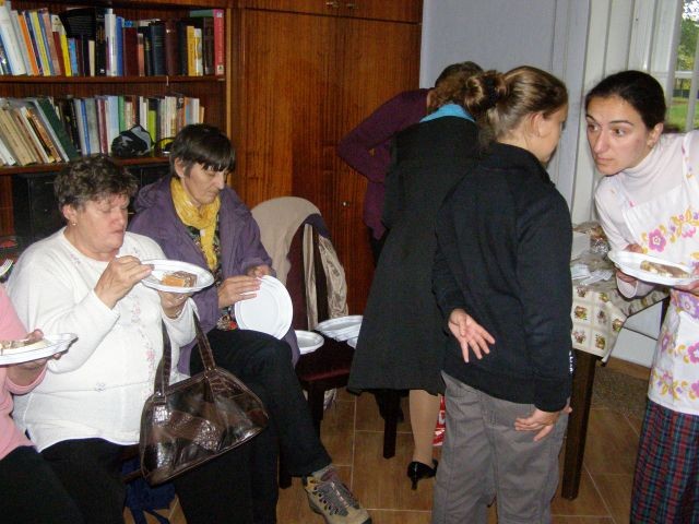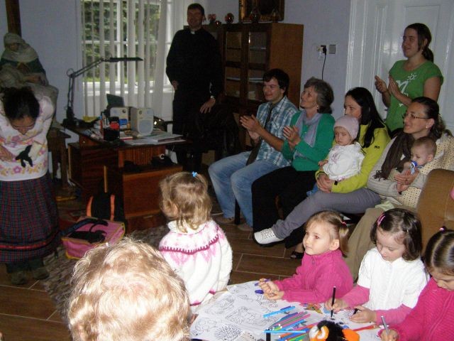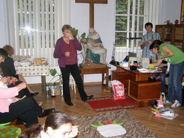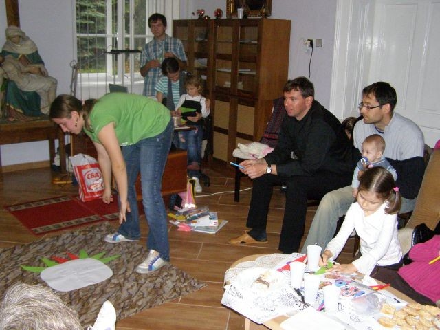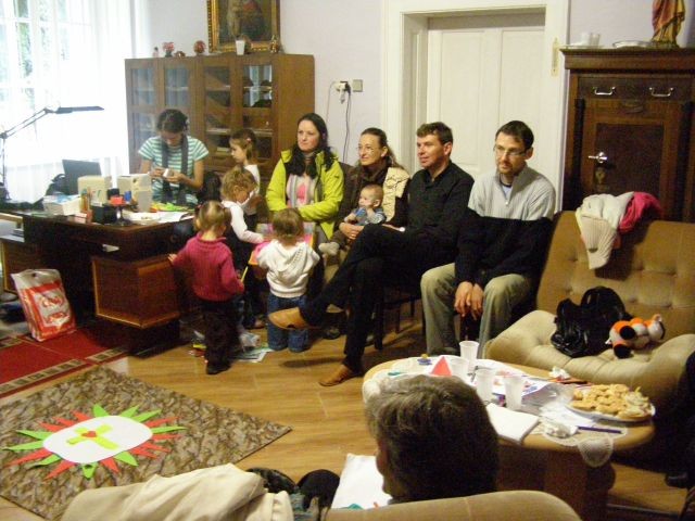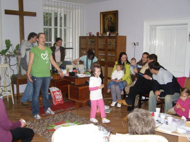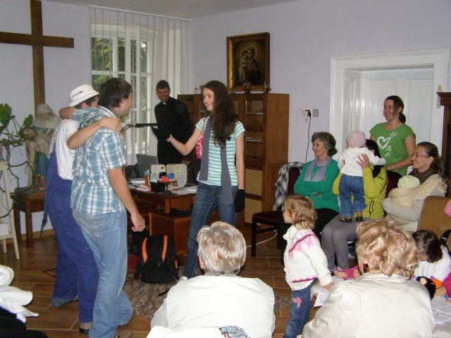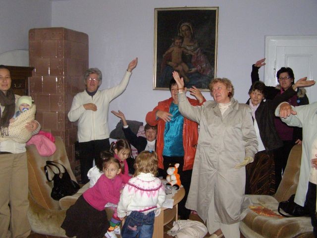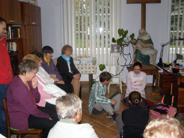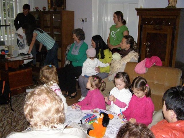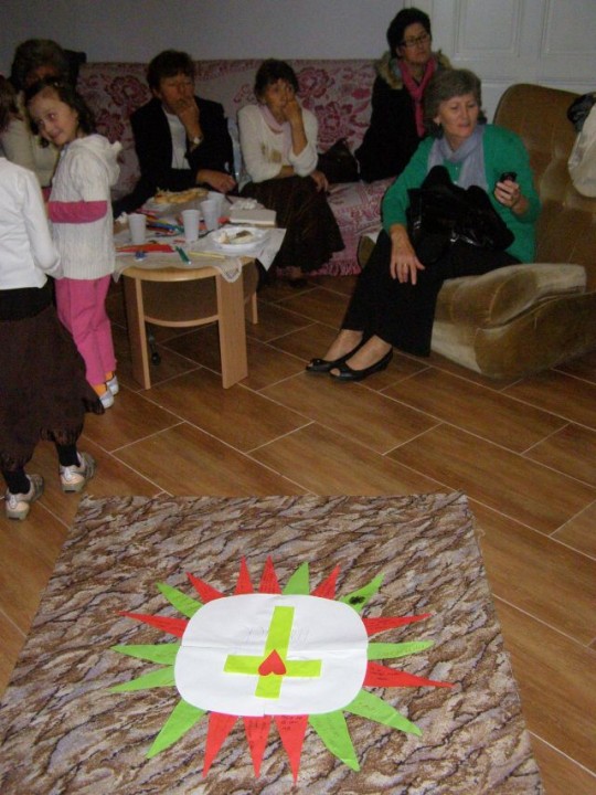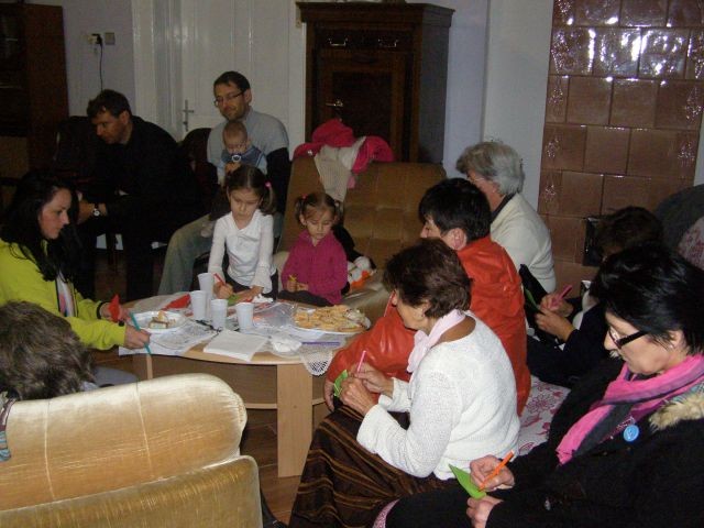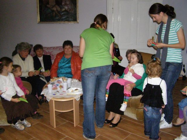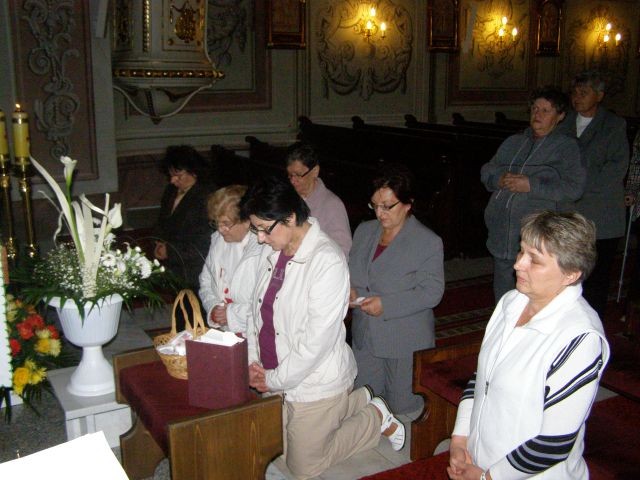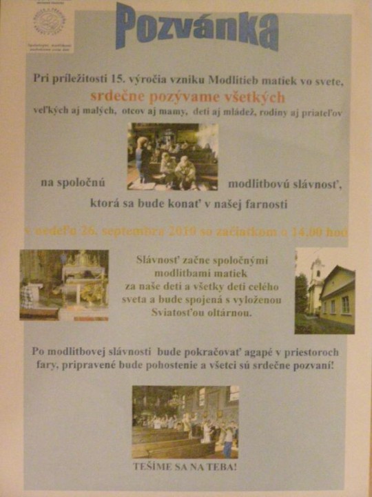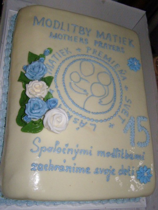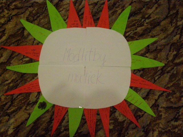 Nedeľné modlitbové stretnutie bolo spojené s oslavou 15. výročia vzniku Modlitieb matiek vo svete. Slávnosť začala spoločnými modlitbami matiek za naše deti a všetky deti celého sveta. Pozvanie prijal aj náš kňaz, ktorý nám vyložil Sviatosť oltárnu. Po modlitbách nasledovalo agapé v priestoroch fary, kde na nás čakala veľká torta. Po úvodnej piesni nám zahrala mládež z Modlitbového stretka Pohoda dva príbehy o rodine. V prvej rodine bola hlavná postava svetská mama a v druhej rodine božia mama. Symbolom svetskej mamy boli čierne rukavice a symbolom dobrej mamy biele rukavice, ktoré si na záver príbehu, keď sa spoločne stretli vymenili. Svetská mama dostala od božej mamy dar - Sväté písmo. Po spoločnom pohostení nám mladí pripravili aktivitu, kde každá mama na slniečko modlitieb matiek priložila svoj lúč na ktorý napísala odpovede na otázky, čo mi modlitby matiek dali a čo som ja dala modlitbám matiek. Spoločne sme vytvorili žiarivé slniečko.