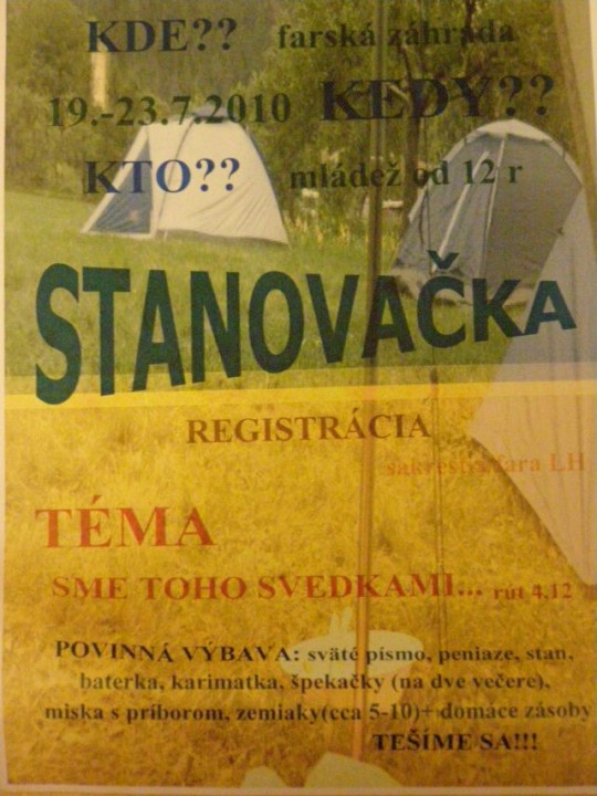 Opäť po roku sme mohli spoločne prežívať prázdninový týždeň od 19. do 23. júla 2010 na farskej záhrade spolu s Ježišom a so skvelými ľuďmi. Po minuloročnom upršanom týždni nám tentokrát počasie prialo, zvykli sme si aj na raňajší budík od pár metrov vzdialenej píly a užívali sme si každý deň.