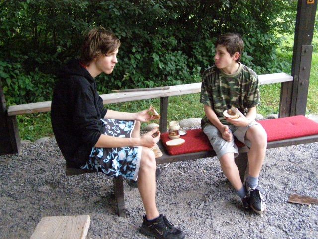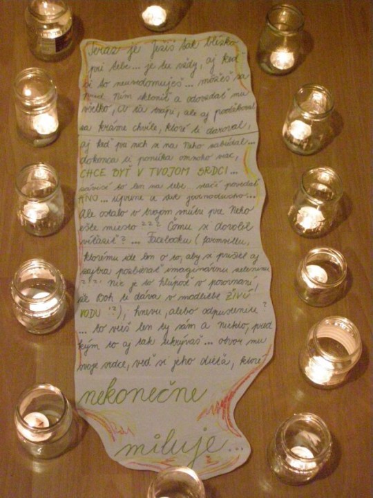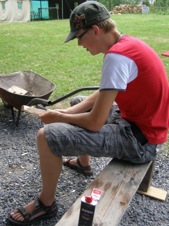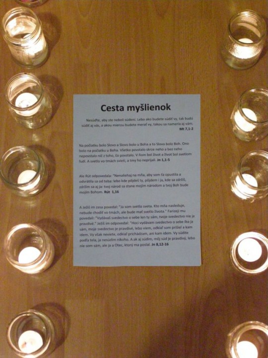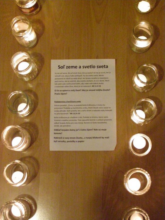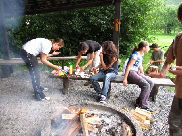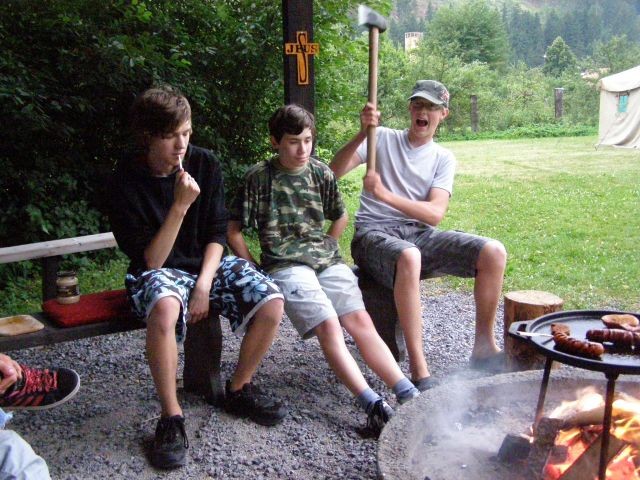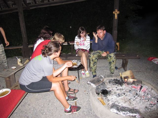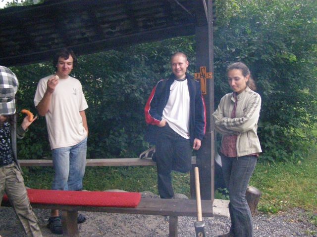 Raňajší budíček sa posunul o pol hodinku, nebolo to veľa, ale všetkých to potešilo. Po raňajšej rozcvičke, ktorú predcvičoval p. farár sme sa spoločne vybrali ku hradu a na Skalku, kde sme si čítali Žalmy a modlili sa za našu farnosť a mesto. Cestou zo Skalky sme sa zastavili u tety Lehotskej na obed, kde nám Katkina mamina naplnila brušká chutným jedlom ku ktorému nechýbal ani zákusok. Poobedný čas sme venovali športovým hrám a spoločne sme si pripravili aj chutné marschmelouny. Po svätej omši, tak ako minulý rok bolo varenie večere výsadou mužskej časti. Chlapi na čele s p. farárom to zvládli a hladní sme neostali. Po večeri, keď nastala tma a na oblohe sa objavili hviezdy, čakalo na nás prekvapenie - „Cesta myšlienok“. Táto cesta sa tiahla celou farskou záhradou, bola lemovaná horiacimi sviečkami a mala nás v myšlienkach priviesť bližšie k Bohu. Cez ňu si musel každý prejsť sám a pri každom zastavení nás čakali úryvky z Evanjelia, meditačné otázky a úlohy. Niektorým sa tak páčila, že si ju prešli dvakrát. Na záver ju p. farár ukončil duchovným slovom.