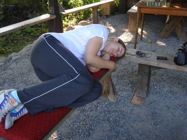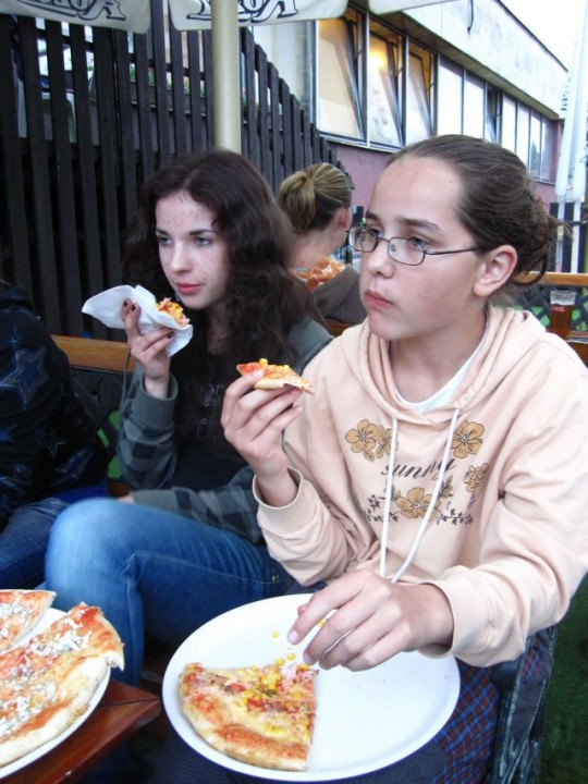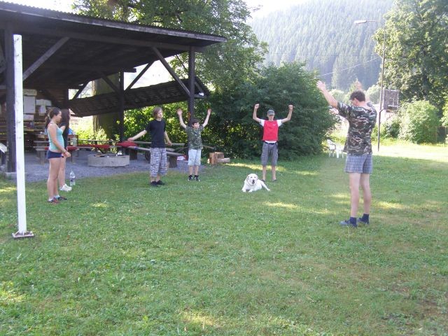 V tento deň bola raňajším budíčkom pesnička, „Všetci ľudia sa radujú“, ktorú nám naša organizátorka Maťa púšťala z prehrávača. Poniektorí po krátkej noci sa veru ráno neradovali a dospávalo sa ešte na lavičkách. Po spoločnej rozcvičke, rozdelení úloh, raňajkách a modlitbe sme pokračovali v hlavnom programe a to v športových hrách. Zahrali sme sa, najedli aj relaxovali. Po svätej omši sme spolu s p. farárom odišli na pizzu, ktorá nám všetkým veľmi chutila. Večer pokračoval modlitbou a spoločnými rozhovormi s našim duchovným otcom na rôzne témy a hoci sme všetci vedeli, že na druhý deň nás čaká náročná túra, spať sa nám nechcelo.
